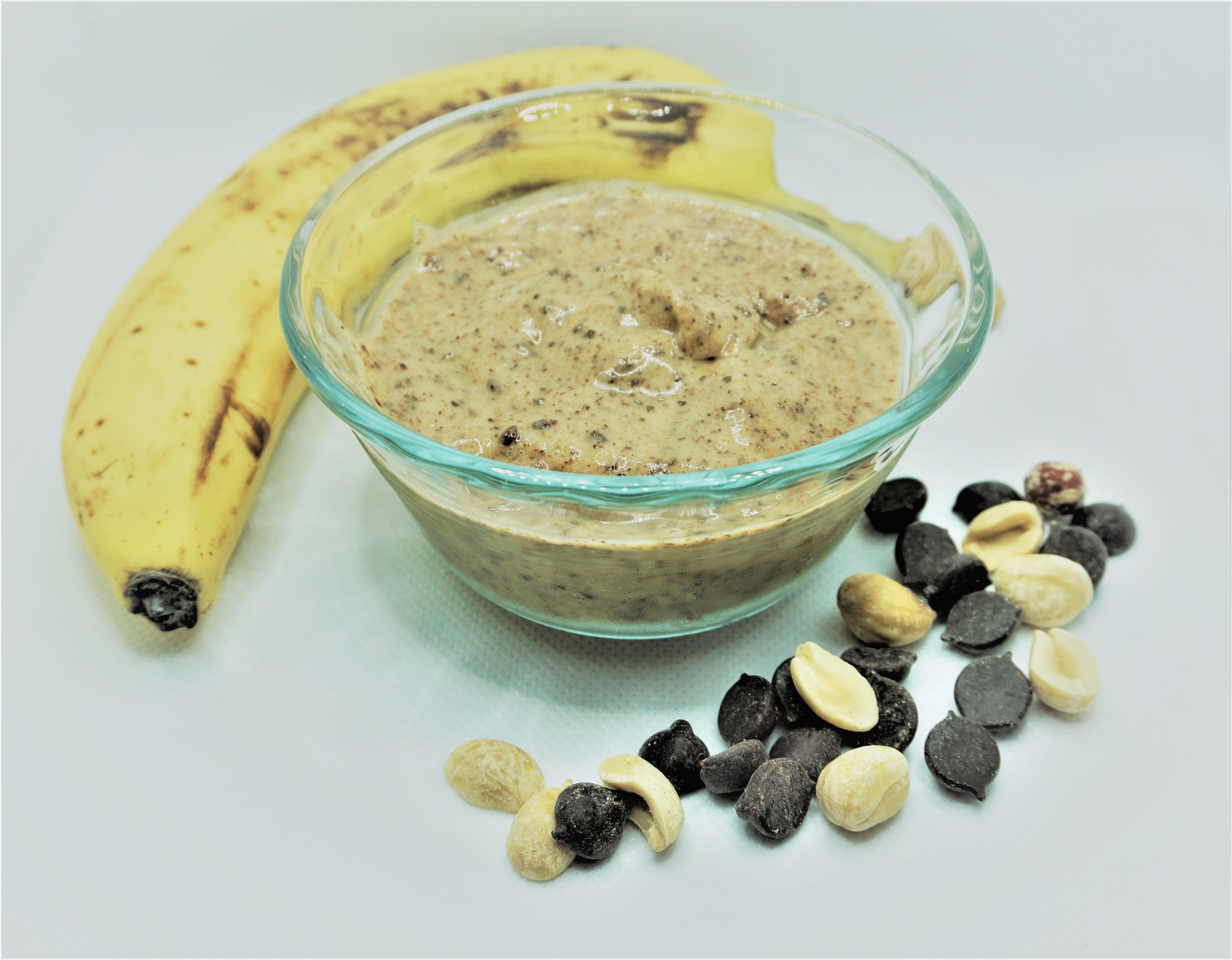 Pulse in any desired ingredients such as peanut butter, chocolate chips, cocoa powder, nuts, cereal, etc. If you do not like banana flavor, it is suggested to add in flavor like peanut butter, cocoa powder, and/or pure vanilla extract to mask the banana flavor. For a fall treat, add 1-2 tbsp pumpkin puree with a dash of pumpkin pie spice. If you don’t want any chunks blended in, you can add desired ingredients as a topping on the ice-cream.